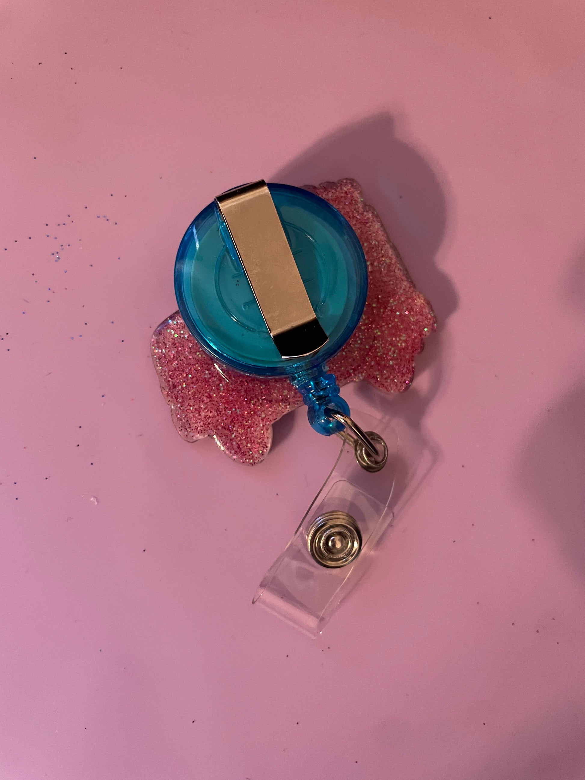 Add a little sparkle to your day with one of our adorable badge reels! Our badge reels are very easy to clean. The decorative pieces are made with an acrylic shape and are sealed with a UV resin which protects them against wear and tear. All badge reels have a 28” pull belt clip! Color may vary slightly from what you see on your computer screen! If you would like to order more than what I have available please send me a message!